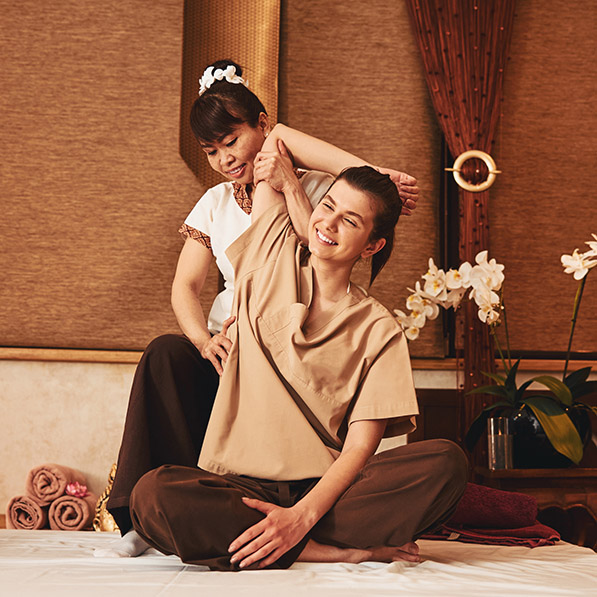 Traditional Thai Massage uses no oils or lotions. The recipient remains clothed during treatment. There is constant body contact between the giver and receiver, but rather than rubbing on muscles, the body is compressed, pulled, stretched and rocked.